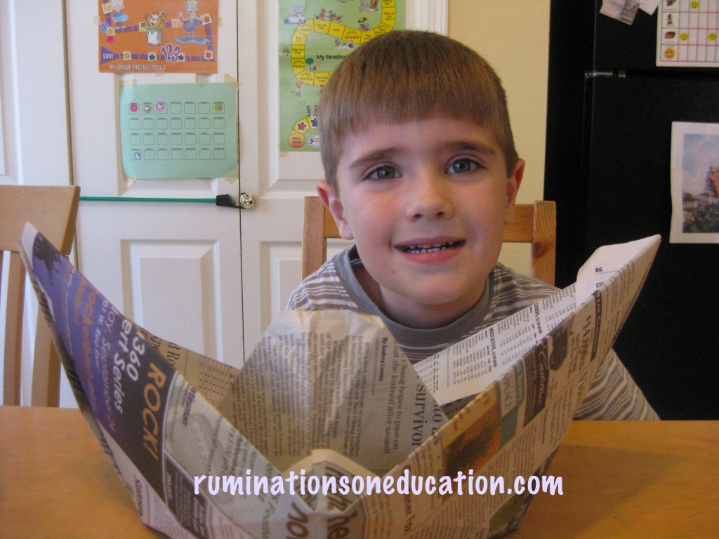 Then we hit a slump. The best I could come up with was folding newspaper boats ala Curious George because the instructions were part of the story (not a Storybook Art-approved project). Not one of our finer moments.