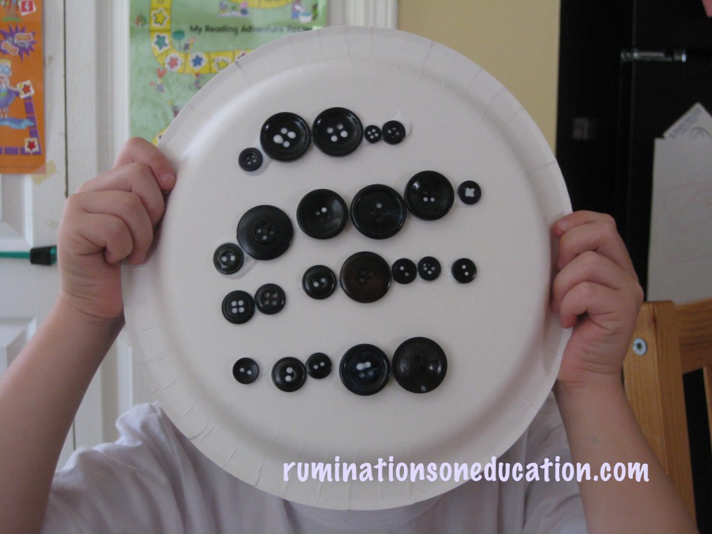 Sam’s. Love how he used a button for the nose but drew in the eyes with marker.
