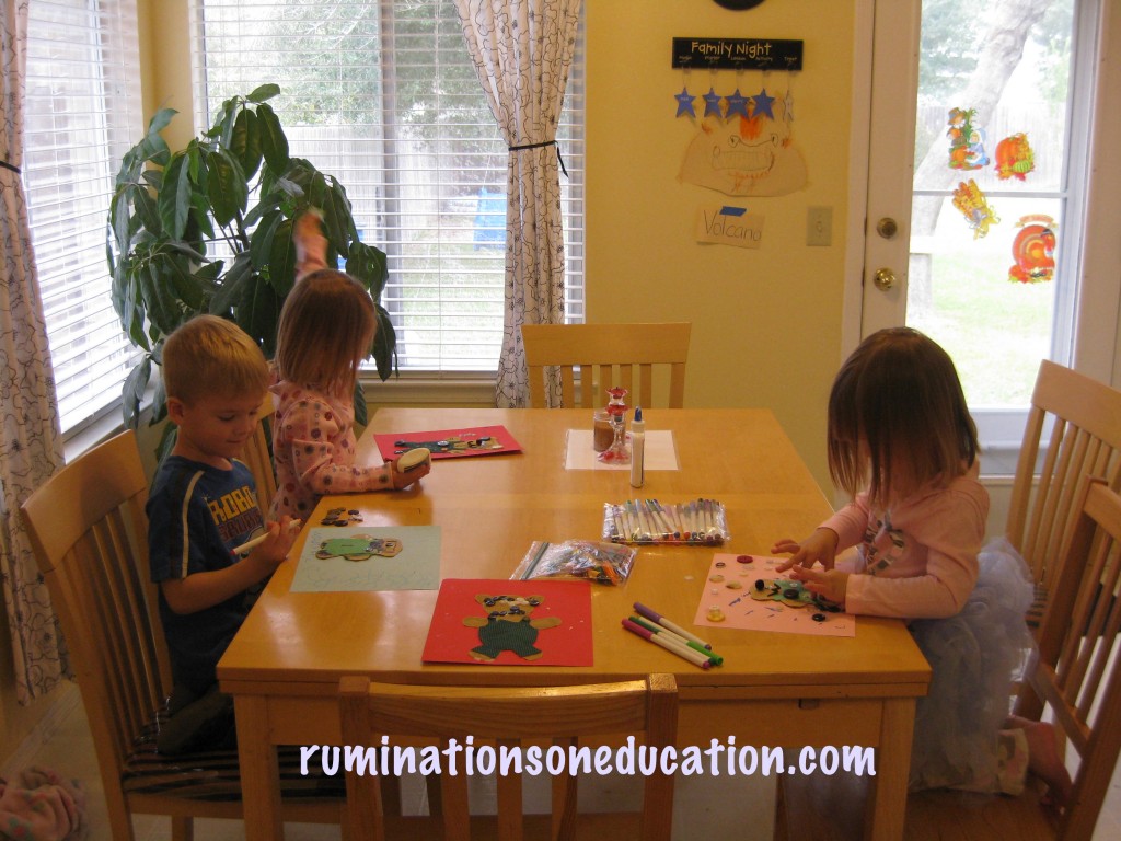 Bottom line? Fail. The best part of the project was reading the book. One of the kids ended up in time-out because of hitting when someone else drew out of turn and into their line. A short-lived project that went right into the trash.